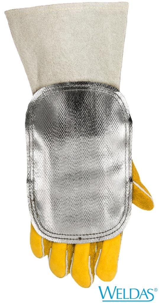 ALUMINIZOWANA OSŁONA NA RĘKĘ DLA SPAWACZY, SZYTA TRUDNOPALNYMI NIĆMI Z KEVLARU