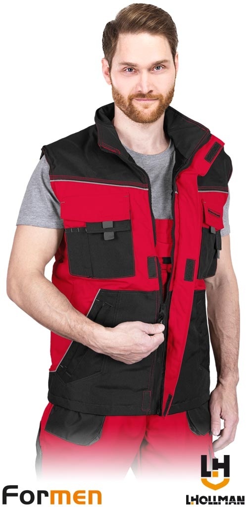 BEZRĘKAWNIK OCHRONNY OCIEPLANY FORMEN FMNW MĘSKI CZERWONO-CZARNO-SZARY