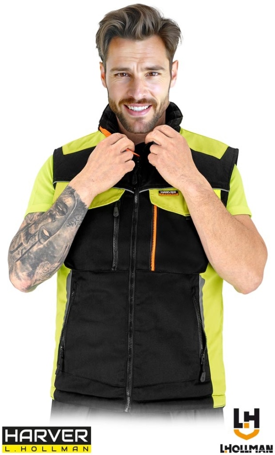 BEZRĘKAWNIK OCHRONNY OCIEPLANY HARVERCOOL CZARNO-ŻÓŁTO-POMARAŃCZOWY