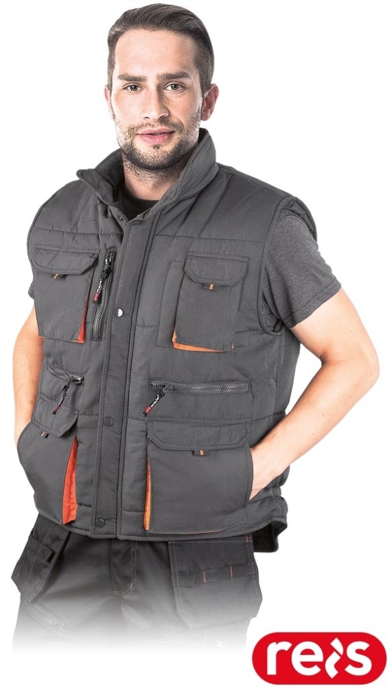 BEZRĘKAWNIK OCHRONNY OCIEPLANY KORMORAN2 SZARO-POMARAŃCZOWY