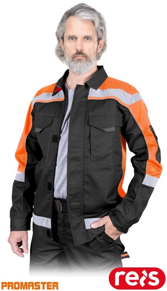 BLUZA OCHRONNA PROM KIESZEŃ NA TELEFON, ODBLASKI, CZARNO-POMARAŃCZOWO-SZARE