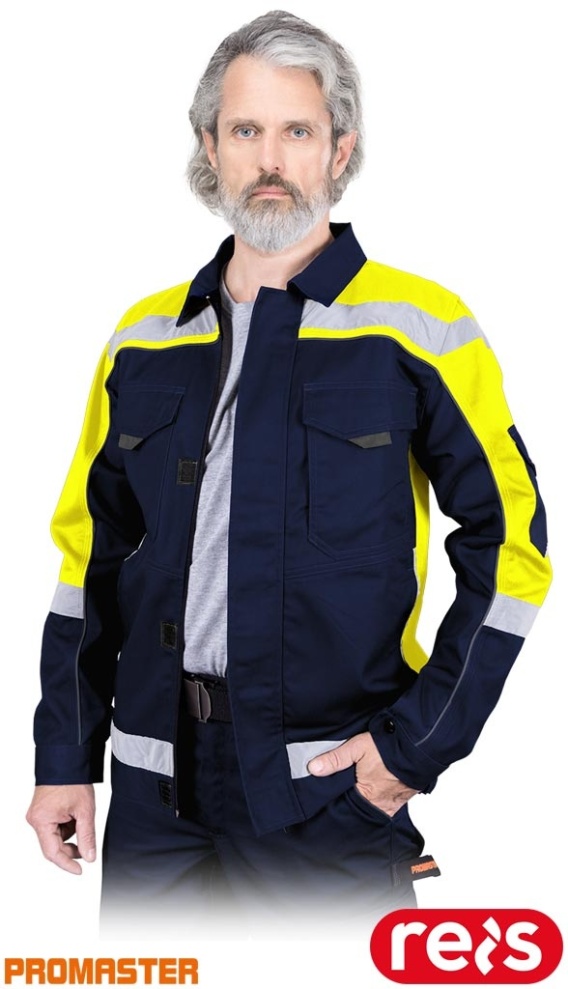 BLUZA OCHRONNA PROM KIESZEŃ NA TELEFON, ODBLASKI, GRANATOWO-ŻÓŁTO-SZARE