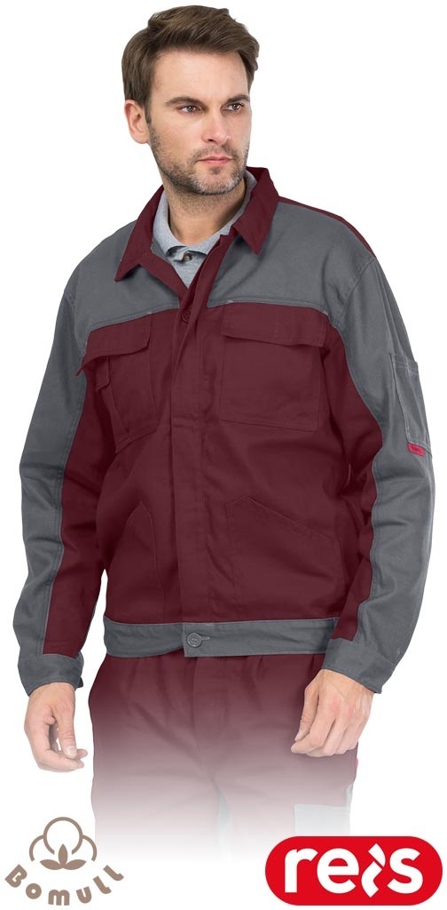 BLUZA OCHRONNA ROBOCZA BAWEŁNIANA MĘSKA BOMULL, BORDOWO-SZARA