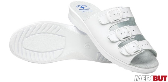 BUTY ZAWODOWE KLA3PAS, KLAPKI DAMSKIE, PROFIL ORTOPEDYCZNY, ANTYPOŚLIZGOWE, BIAŁE, TRZY PASKI