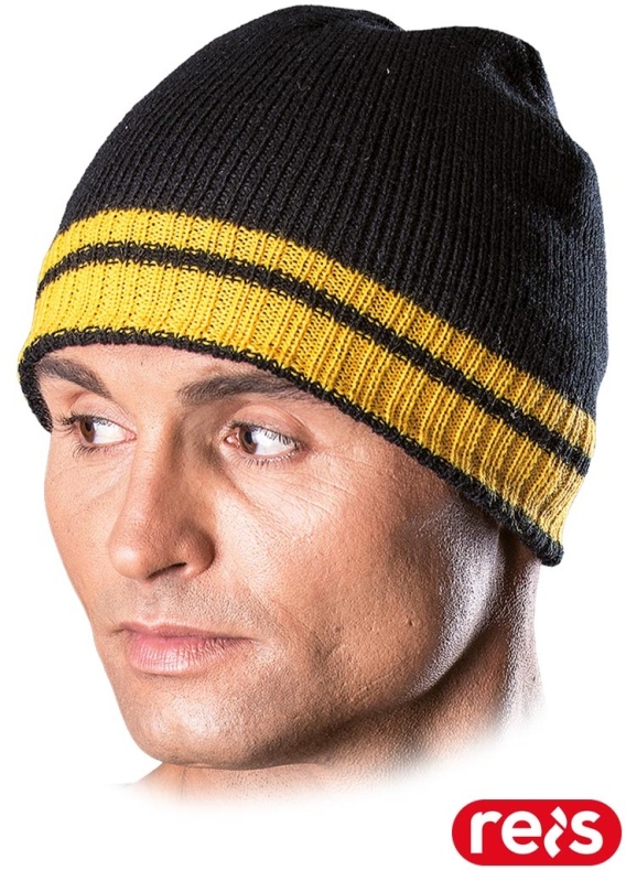 CZAPKA OCIEPLANA OCHRONNA ZIMOWA PAS CZARNO-ŻÓŁTA