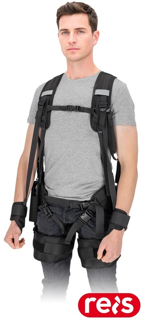 - w zestawie: szelki, rękawice, tył tułowia, pas biodrowy, moduł magazynujący energię, otwór regulacji siły wspomagania, pasek mocujący do ściągania, nakładka na nogę, przełącznik mechaniczny