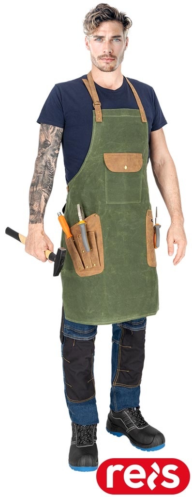FARTUCH OCHRONNY CHISEL WOSKOWANA TKANINA, DLA RZEMIEŚLNIKÓW ZIELONO-BRĄZOWY