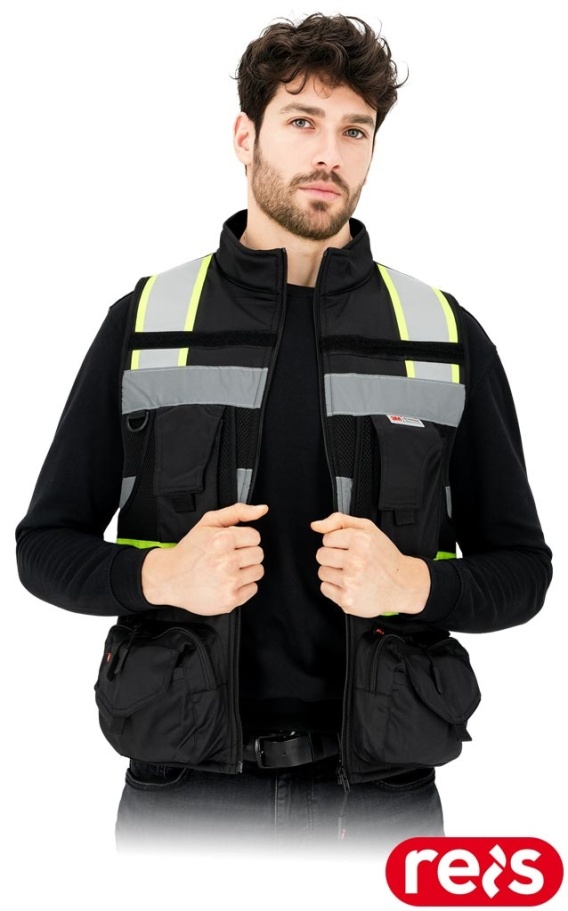 KAMIZELKA OSTRZEGAWCZA TYTAN WSTAWKI Z SIATKI, KIESZENIE, CZARNA