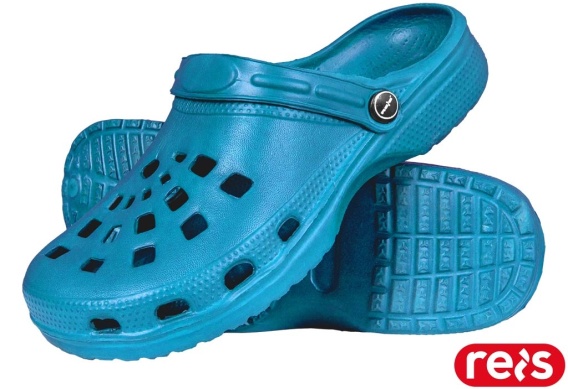 KLAPKI DOTS Z TWORZYWA Z OTWORAMI, Z PASKIEM NA PIĘTĘ JASNONIEBIESKIE