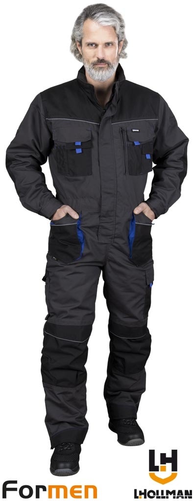 KOMBINEZON OCHRONNY OCIEPLANY FORMEN FMNW CORDURAM, KIESZENIE NA NAKOLANNIKI SZARO-CZARNO-NIEBIESKIE