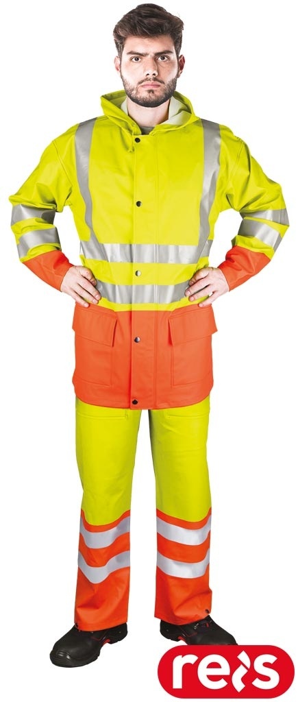 KOMPLET OCHRONNY PRZECIWDESZCZOWY KPLPUFLUO KURTKA I SPODNIE OGRODNICZKI ŻÓŁTO-POMARAŃCZOWE