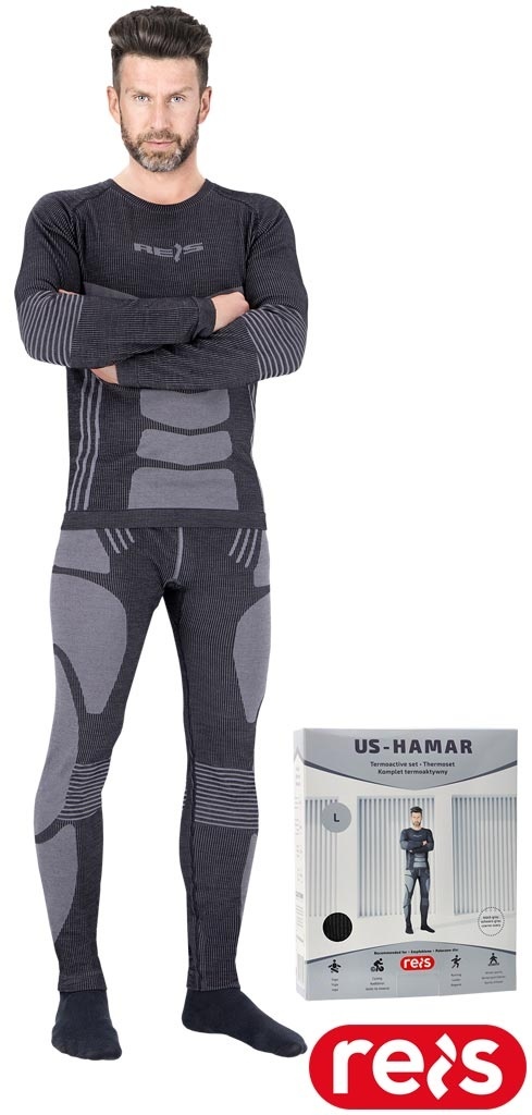 KOMPLET TERMOAKTYWNY HAMAR BIELIZNA MĘSKA CZARNO-SZARY WEŁNA, WŁÓKNO BAMBUSOWE
