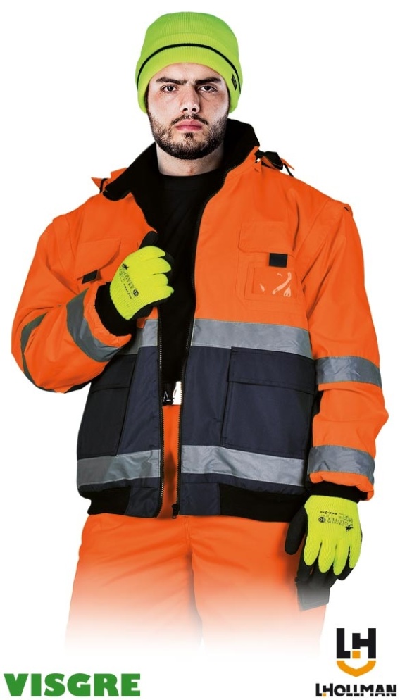 KURTKA OCHRONNA OCIEPLANA ODBLASKI VIBER 2W1 ODPINANE RĘKAWY POMARAŃCZOWO-GRANATOWA