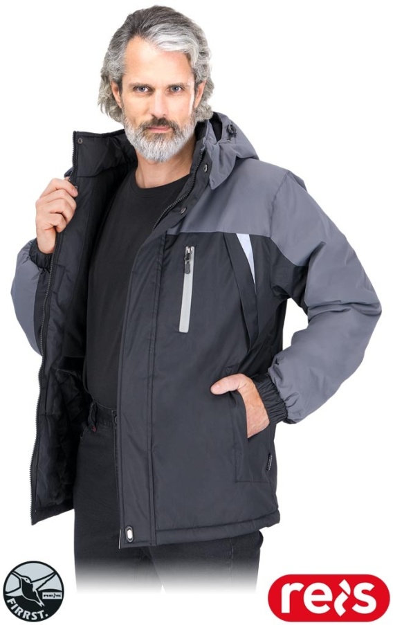 KURTKA OCHRONNA OCIEPLANA OSVALD MĘSKA ZIMOWA, ODBLASKOWE ELEMENTY, CZARNO-SZARA