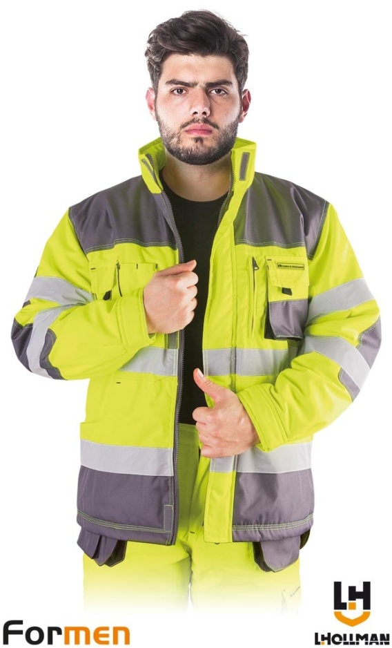 KURTKA OCHRONNA OCIEPLANA ZIMOWA FORMEN PRZEDŁUŻANY TYŁ ŻÓŁTO-SZARO-CZARNA