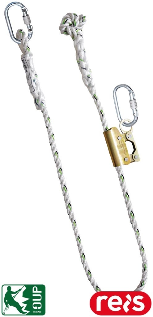 - urządzenie samozaciskowe wyposażona w stalowy karabińczyk do połączenia z uprzężą użytkownika