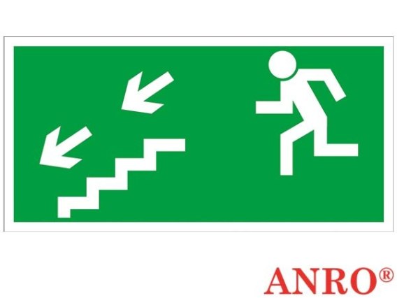 Naklejka samoprzylepna, znak ewakuacyjny „Kierunek do wyjścia drogi ewakuacji schodami w dół (...)"ZNAK BEZPIECZEŃSTWA-150x300mm