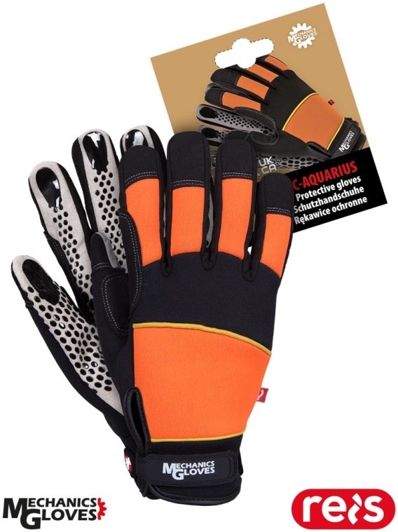RĘKAWICE OCHRONNE AQUARIUS PRZEMYSŁ MOTORYZACYJNY, MECHANICY POMARAŃCZOWO-CZARNE