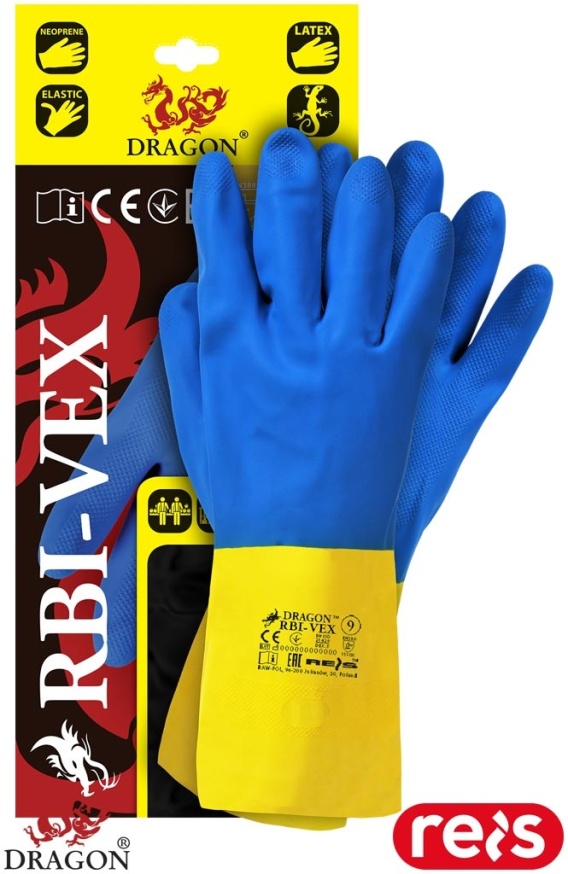 RĘKAWICE OCHRONNE RBI-VEX FLOKOWANE, ODPORNE NA DETERGENTY 12PAR