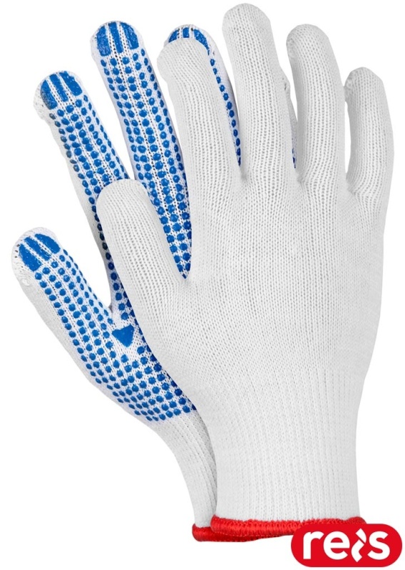 RĘKAWICE OCHRONNE RDZN BIAŁO-NIEBIESKIE Z NAKROPIENIEM PCV, 12 PAR