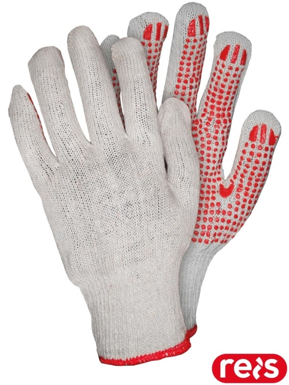 - jednostronne nakropienie z PCV na części chwytnej zapewniajce dobrą chwytność podczas przenoszenia towarów, a także zwiększa trwałość rękawicy