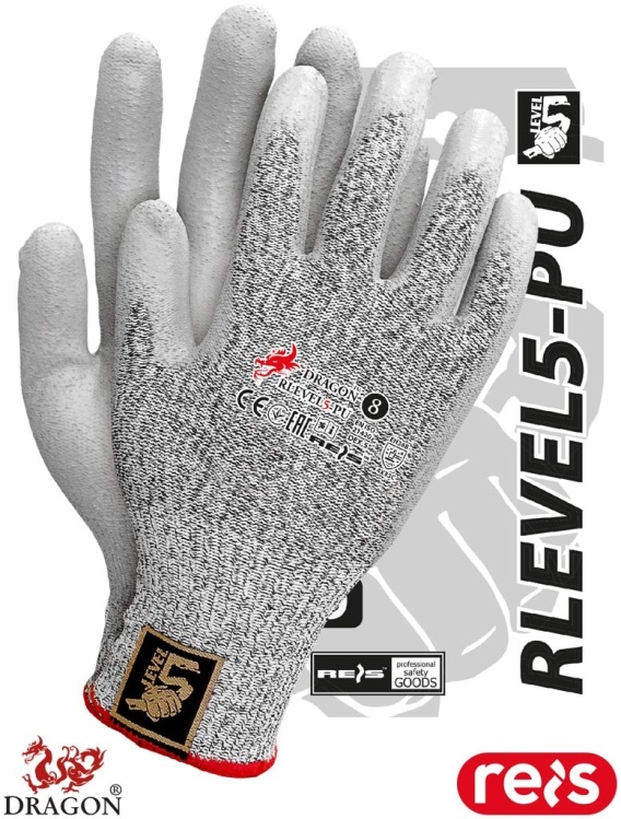 RĘKAWICE OCHRONNE RLEVEL5-PU ODPORNOŚĆ NA PRZECIĘCIA I ŚCIERANIE DO PRACY ZE SZKŁEM, BLACHAMI