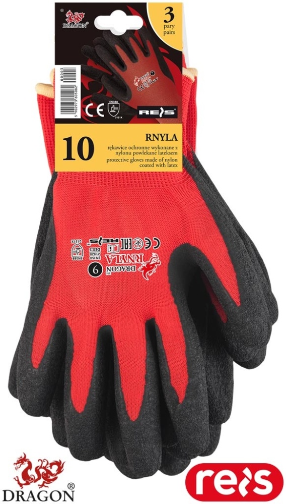 RĘKAWICE OCHRONNE RNYLA POWLEKANE LATEKSEM O CHROPOWATEJ STRUKTURZE CZERWONO-CZARNE 3PARY