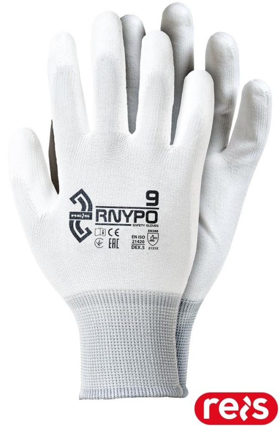 RĘKAWICE OCHRONNE RNYPO BIAŁE POWLEKANE POLIURETANEM DOPASOWUJĄ SIĘ DO DŁONI 12PAR
