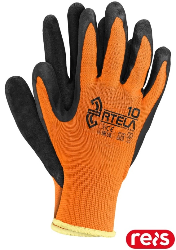 RĘKAWICE OCHRONNE RTELA POMARAŃCZOWO-CZARNE 12PAR