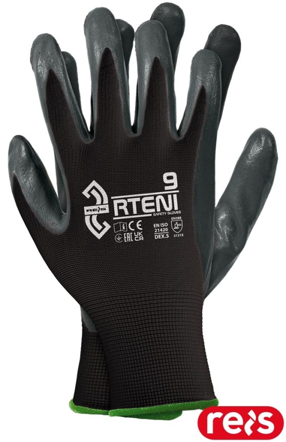 RĘKAWICE OCHRONNE RTENI NITRYL TYPU SMOOTH PRACE MECHANICZNE CZARNO-SZARE 12par