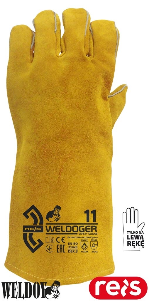RĘKAWICE OCHRONNE SPAWALNICZE WELDOGER-L NA LEWĄ RĘKĘ SKÓRA BYDLĘCA