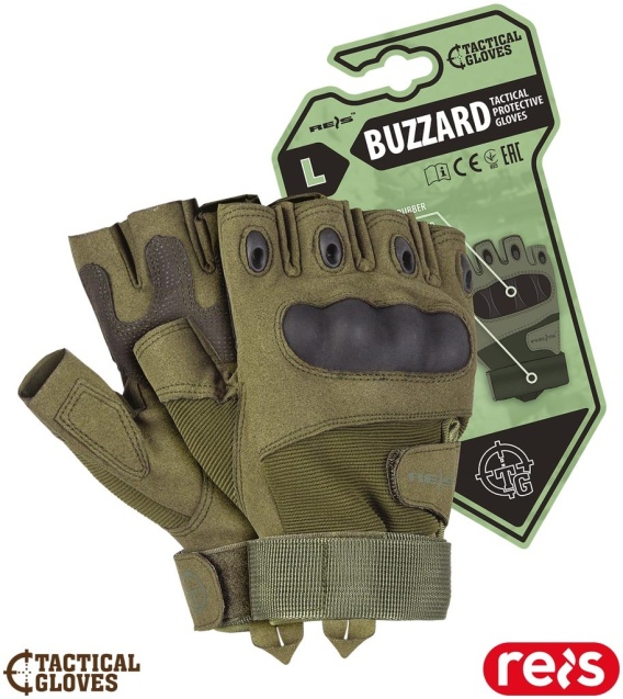 RĘKAWICE OCHRONNE TAKTYCZNE BUZZARD GUMOWA WSTAWKA NA KOSTKACH, BEZ KOŃCÓWEK PALCÓW, ZIELONE