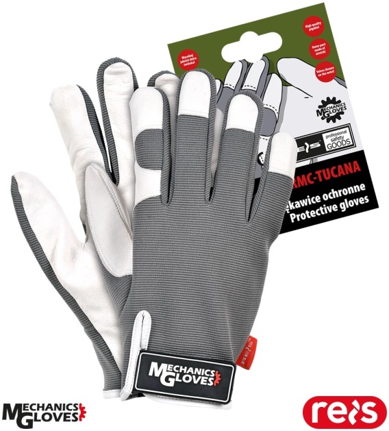 RĘKAWICE OCHRONNE TUCANA ŚWIŃSKA SKÓRA, STRETCH, ZAPINANE NA RZEP, DLA MECHANIKÓW