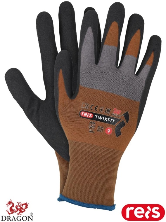 RĘKAWICE OCHRONNE TWIXFIT BRĄZOWO-SZARE 6 PAR