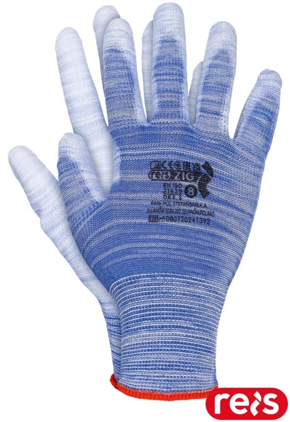RĘKAWICE OCHRONNE ZIG NIEBIESKIE POWLEKANE POLIURETANEM ELASTYCZNE DO PRECYZYJNYCH PRAC, 12PAR