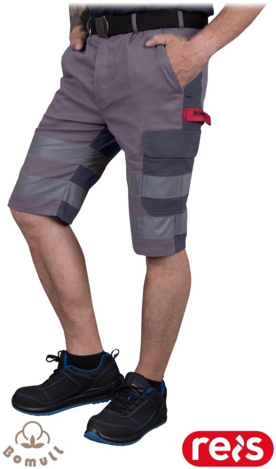 SPODNIE OCHRONNE DO PASA BAWEŁNIANE - KRÓTKIE SPODNIE ROBOCZE Z ODBLASKAMI BOMULLX SZARO-CIEMNOSZARE