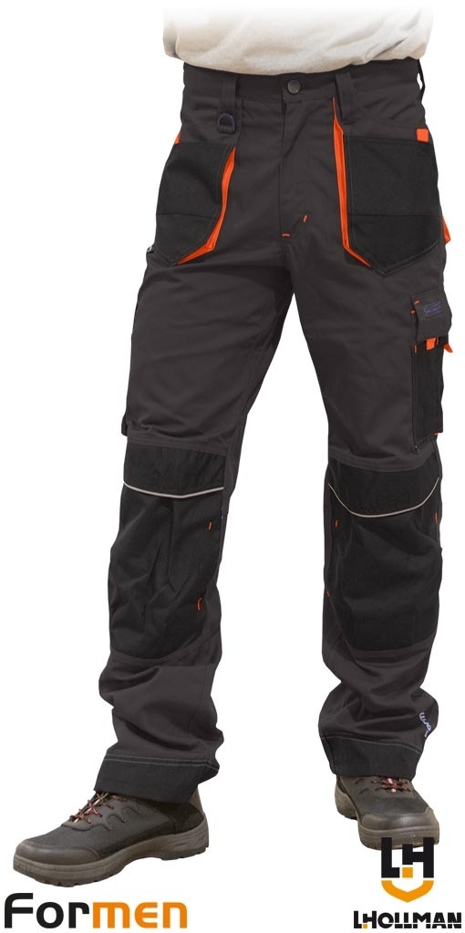 SPODNIE OCHRONNE DO PASA FORMEN CORDURA, KIESZENIE NA NAKOLANNIKI SZARO-CZARNO-POMARAŃCZOWE