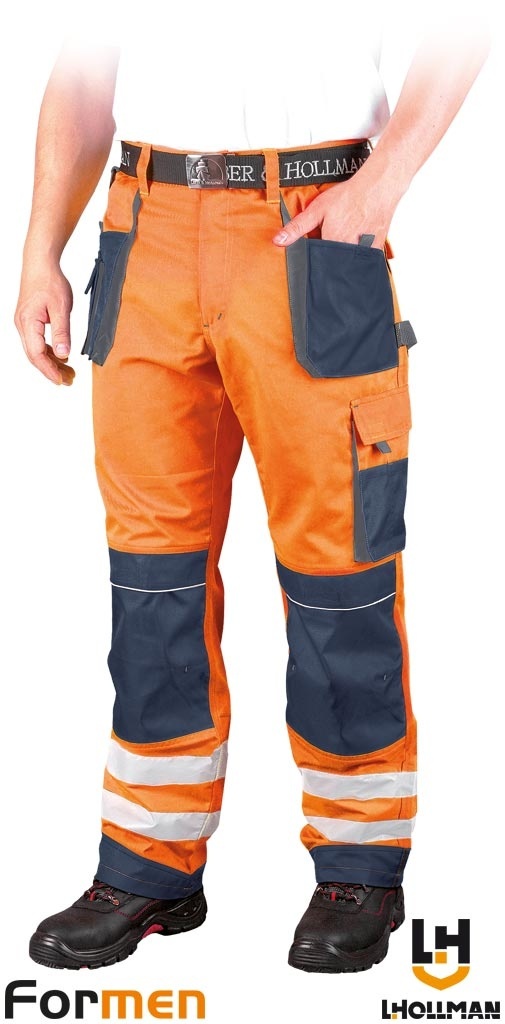 SPODNIE OCHRONNE DO PASA FORMEN FMNX FLUORESCENCYJNE KOLORY, ODBLASKI, POMARAŃCZOWO-GRANATOWO-SZARE