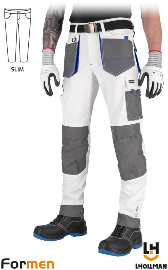 SPODNIE OCHRONNE DO PASA FORMEN SLIM KIESZENIE NA NAKOLANNIKI BIAŁO-SZARO-NIEBIESKIE