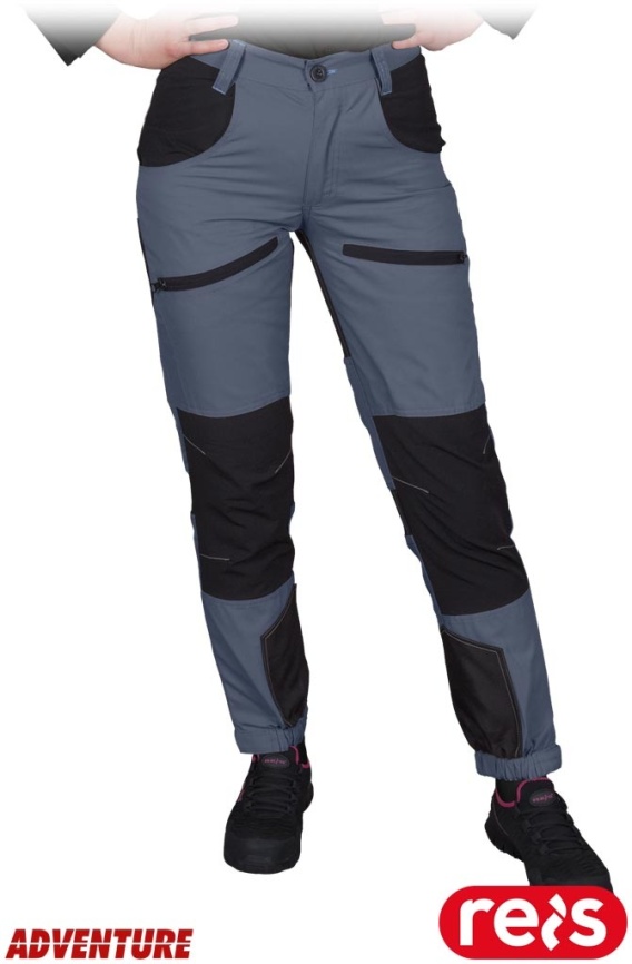 - nogawki zakończone ściągaczem z dodatkowym zapięciem na rzep umożliwiającym regulację ich szerokości