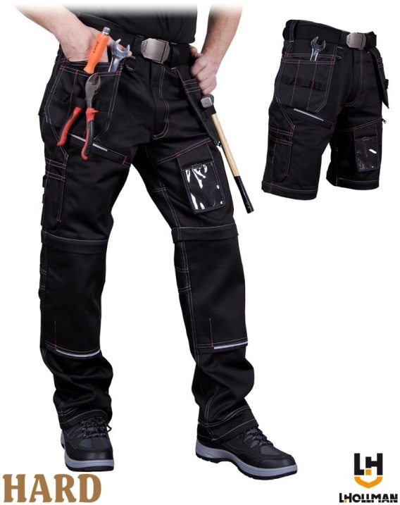 SPODNIE OCHRONNE DO PASA I KRÓTKIE PEAKER 2W1, KIESZENIE MONTERSKIE, ODPINANE NOGAWKI, CZARNE
