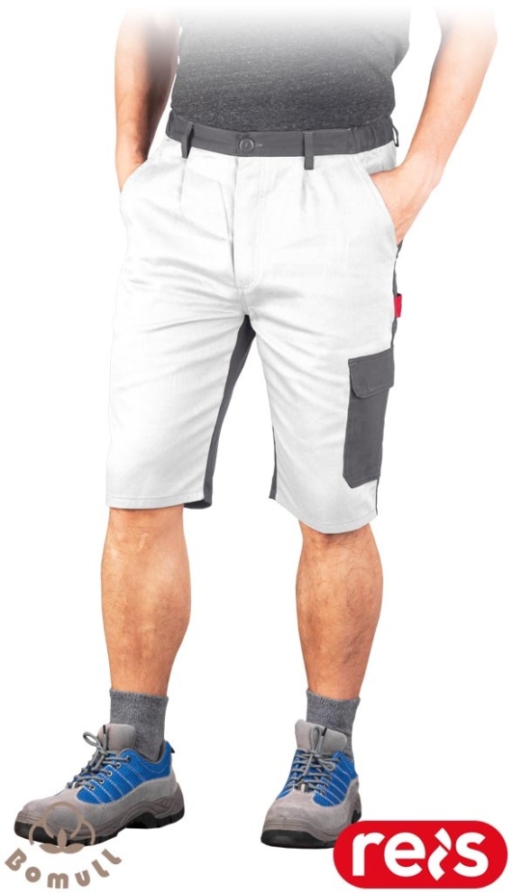 SPODNIE OCHRONNE DO PASA - KRÓTKIE ROBOCZE BAWEŁNIANE, REGULACJA W PASIE BOMULL, BIAŁO-SZARE
