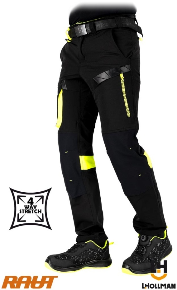 SPODNIE OCHRONNE DO PASA RAUT, 4 KIERUNKOWY STRECZ, RIP-STOP OCHRONA PRZED ROZDARCIEM CZARNO-ZÓŁTE