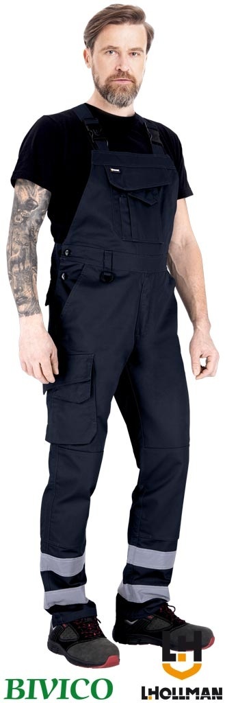 SPODNIE OCHRONNE OGRODNICZKI BISTER ODBLASKOWE PASY GRANATOWE