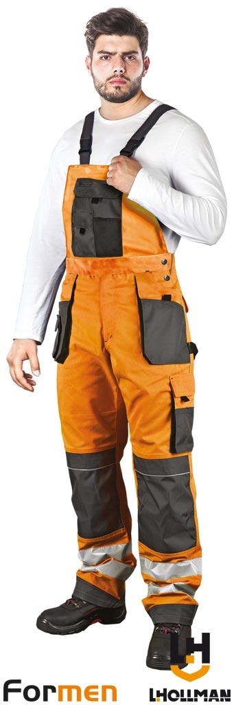 SPODNIE OCHRONNE OGRODNICZKI FORMEN FMNX, ODBLASKI ,KIESZENIE NA NAKOLANNIKI POMARAŃCZOWO-SZARO-CZARNE