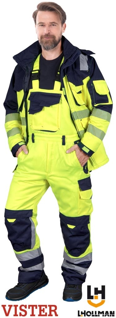 SPODNIE OCHRONNE OGRODNICZKI OCIEPLANE BIBWINTER ŻÓŁTO-GRANATOWE
