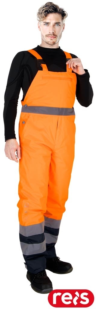 SPODNIE OCHRONNE OGRODNICZKI OCIEPLANE MĘSKIE, FLUO, PASY ODBLASKOWE, DLA DROGOWCÓW POMARAŃCZOWO-GRANATOWE