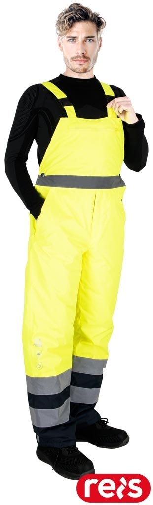 SPODNIE OCHRONNE OGRODNICZKI OCIEPLANE MĘSKIE, FLUO, PASY ODBLASKOWE, DLA DROGOWCÓW ŻÓŁTO-GRANATOWE