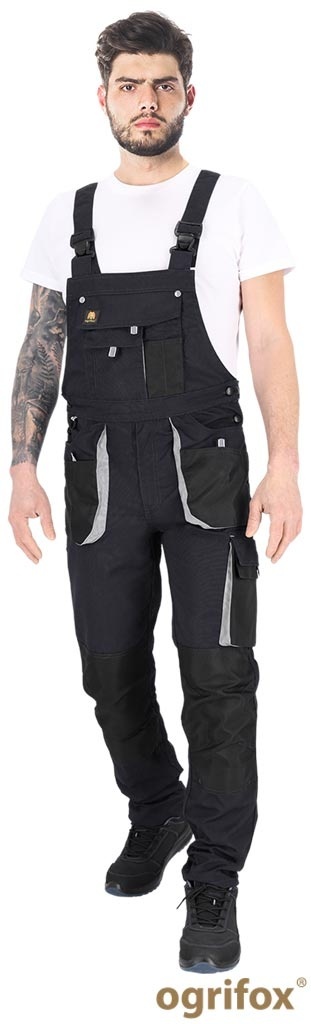 SPODNIE OCHRONNE OGRODNICZKI OX.05.123 OGR, UCHWYT NA MŁOTEK, KIESZENIE NA NAKOLANNIKI, SZARO-CZARNO-JASNOSZARE
