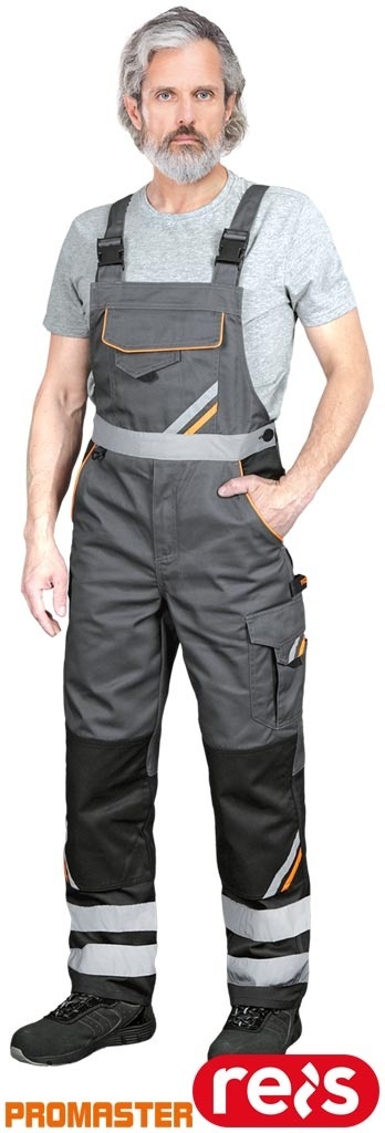SPODNIE OCHRONNE OGRODNICZKI PROM KIESZENIE NA NAKOLANNIKI, ODBLASKI, SZARO-CZARNO-POMARAŃCZOWE